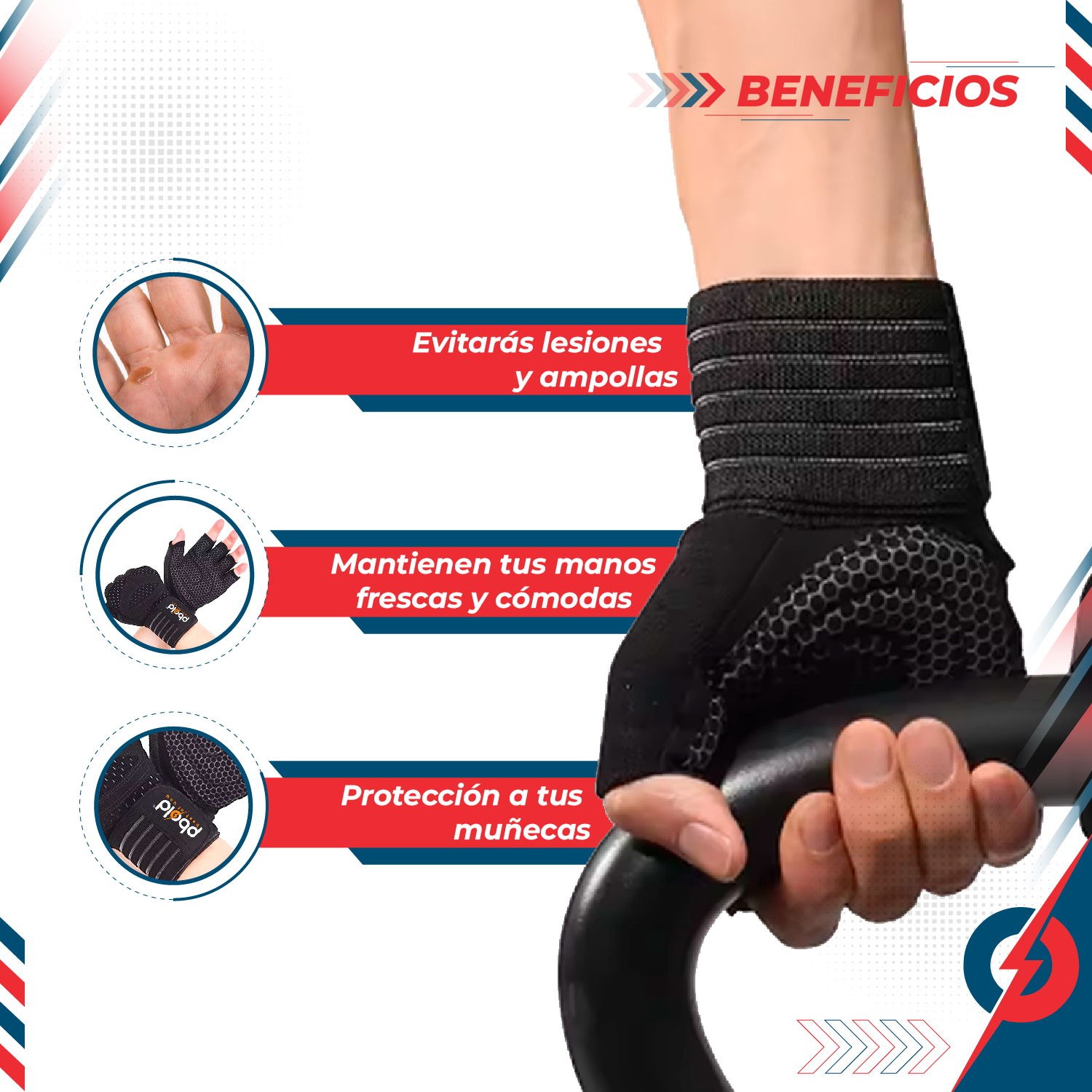 Guantes Gimnasio V1 Pbold Protección y Agarre Profesional