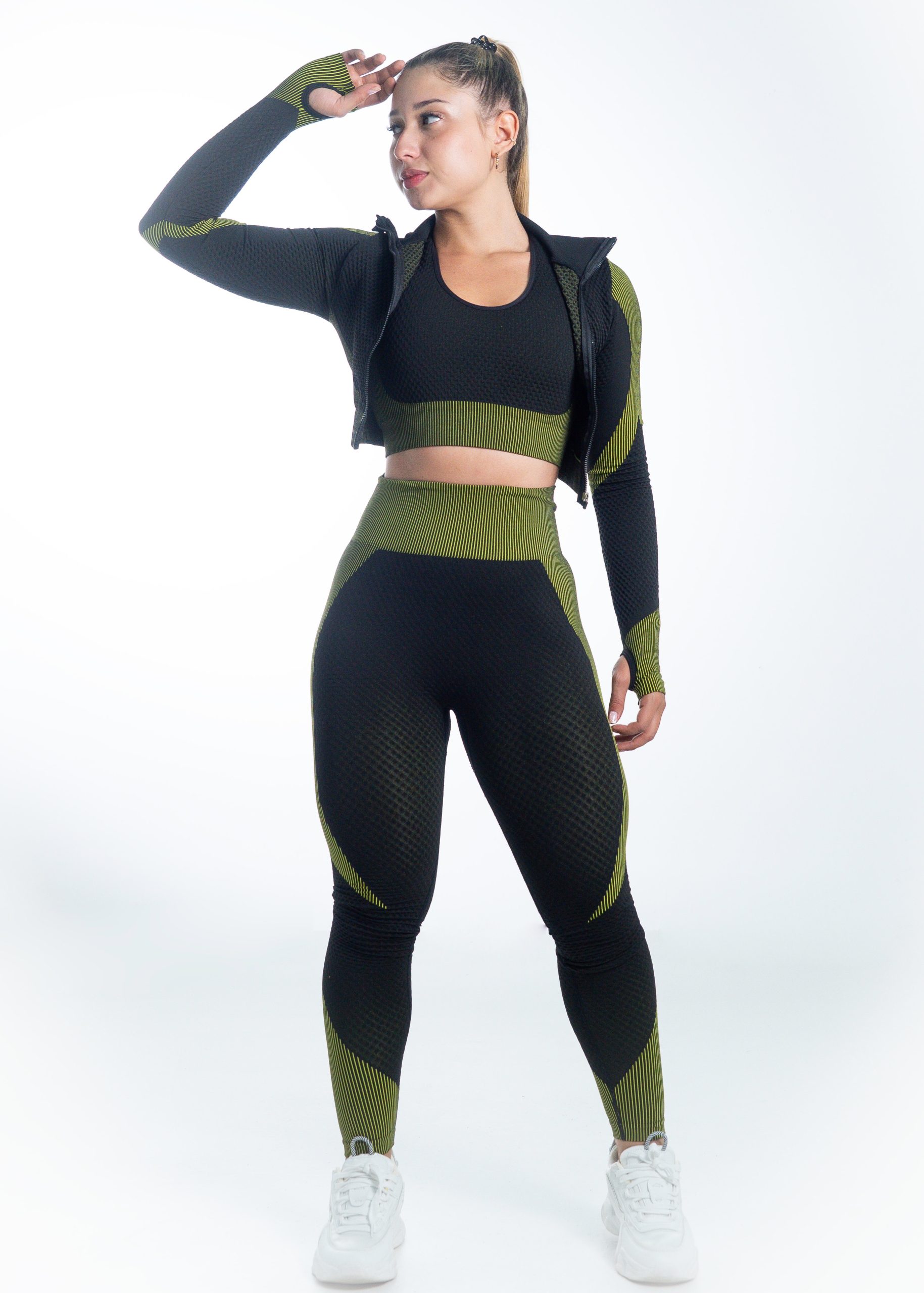 Incluye Top, Chaqueta y Leggins, creando un look completo, moderno y funcional 🔥