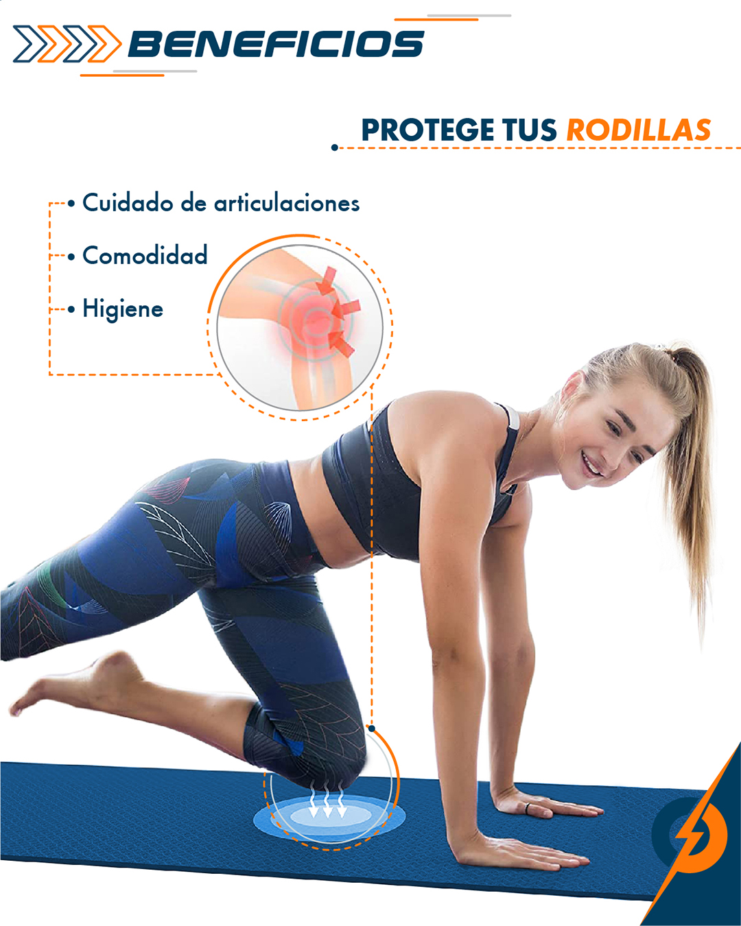 La Colchoneta Deportiva Antideslizante está diseñada para brindarte un soporte suave y acolchado que protege tus articulaciones tanto en ejercicios de bajo como de alto impacto.